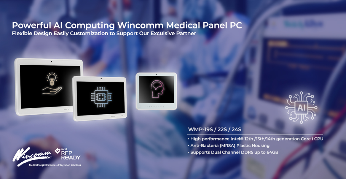 Wincomm is pleased to announce WMP-19S/22S/24S series – designed specialized for AI assisted diagnosis and operations at hospital. Equipped with an Intel® 13th Gen. Core™ i9/i7i5 processor with 35W(max), 24/16/14 cores , one embedded MXM graphic card slot ready for A4500/A2000/A1000 , IP65 front, innovated dual video-in/out ports design, up to 250W power supply, optional UPS battery and one PCIex4 expansion slot to support medical image processing during operation, the WMP-19S/22S/24S series passed medical latest certification making it ready for various AI assisted surgery, diagnosis and clinical applications in the hospital. Moreover, a special MXM graphic card inside up to Nvidia A4500, 20GB GDDR6 with ECC 80W plus powerful Intel core processors up to 5.0/4.5Ghz 35W support for intense graphic processing real time which has overcome rugged thermal issue to optimize the performance.
