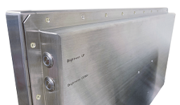 Fig 2. With robust antenna design (left) and brightness control button (right), it is 100% water and dust proof guarantee with full sealed enclosure by non-corrosion SU304 stainless steel with easy control brightness to fulfill various installation condition in the factory automation.