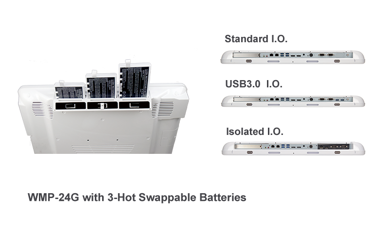 Figure 3. The integration of hot-swappable batteries makes the WMP-22G/24G series panel PCs highly suitable for mobile EMR applications.
