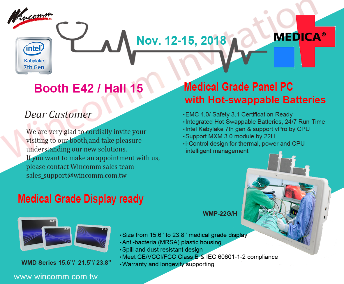 Welcome to visit Wincomm booth 15E42, Hall 15, in MEDICA, the leading international trade fair for the medical sector, Düsseldorf / Germany from 12 - 15 November 2018.