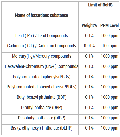 RoHS2.0 - Requirements on 4 phthalates will be effective in July 2019