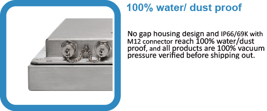 Fig 1. 100% water/dust proof guarantee comes all products are vacuum pressure verified before shipping out. With robust antenna design, it is IP69K with full sealed enclosure by non-corrosion SU304 or SU316 stainless steel.