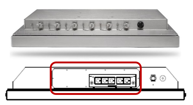 Fig 2. The WTP series is used M12 metal connector for various I.O. ports, such as USB, COM, and LAN. Now it provides optional waterproof cable glands sets to fulfill extremely rugged function requirement.