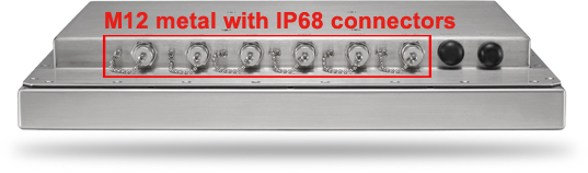 WTP-9A66-15/19 series has a built-in efficient Intel Core i Ivy bridge processor with 2 GB of DDR3 memory. Rear M12 I/O connectors in a waterproof housing provide access to two COM ports, two USB 2.0 ports (by cable with 1 x M12 to 2 USB ports), one Gigabit Ethernet port and a DC power port.
