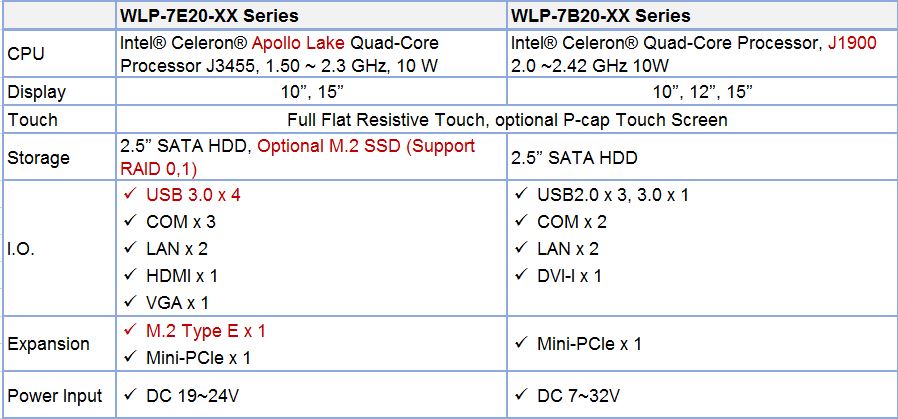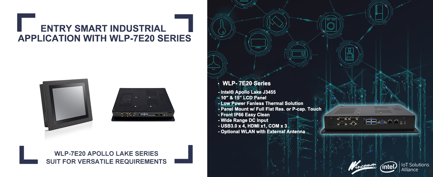 As a leading Industrial Panel PCs Maker, Wincomm released its new WLP-7E20 series with Intel Apollo Lake CPU and now are available in sizes of 10.4 and 15 inches. Featuring at its water and dust proof IP66 front and fanless thermal solution, WLP-7E20 series expand its computing performance selections compare to the previous generation series WLP-7B20 series, and enhance its low power design to suit for various applications, such as, smart building HMI applications, access control systems, kiosk, and other smart facility control solutions.