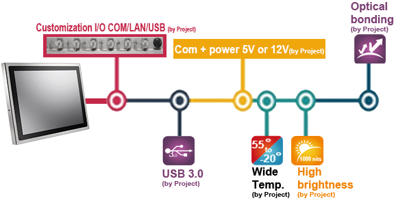 WTP-9E66 Series可以針對不同應用環境,還可以客制化COM、USB3.0、LAN的數量與功能以符合使用者需求。此外,在陽光直射的應用環境裡,Wincomm也提供1000 nits高亮度LCD與陽光可讀性光學抗折射防眩光處理,可完全依照客戶需求進行彈性化設計。
