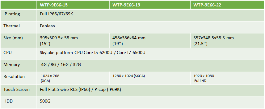 Wincomm發表最新防水機種WTP-9E66 Series,搭載Intel第六代處理器平台Skylake,CPU Core i5-6200U (Passmark: 3984),效能大幅提升外,CPU耗電量也有效降低,在圖形運算的部分也有顯著提升。