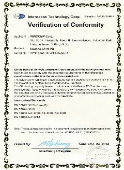 In product certifications, the WTP-9A66-19 has passed FCC, CE (EMC), VCCI Class B certification standards. Our competitors only have Class A certification. Class B has stricter electromagnetic waves standards, which results in an upgrade from industrial usage to home usage. Our users have a higher protection level in their health and safety from the electromagnetic waves while using the WTP-9A66-19.