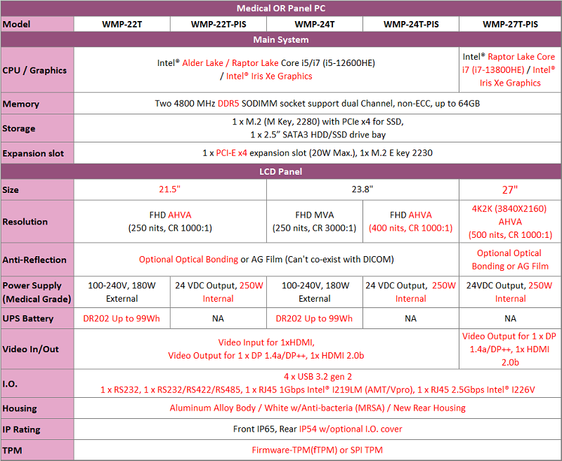 The WMP-27T-PIS series stands out for its pioneering design and exceptional capabilities, reinforcing Wincomm’s leadership in advancing medical technology.