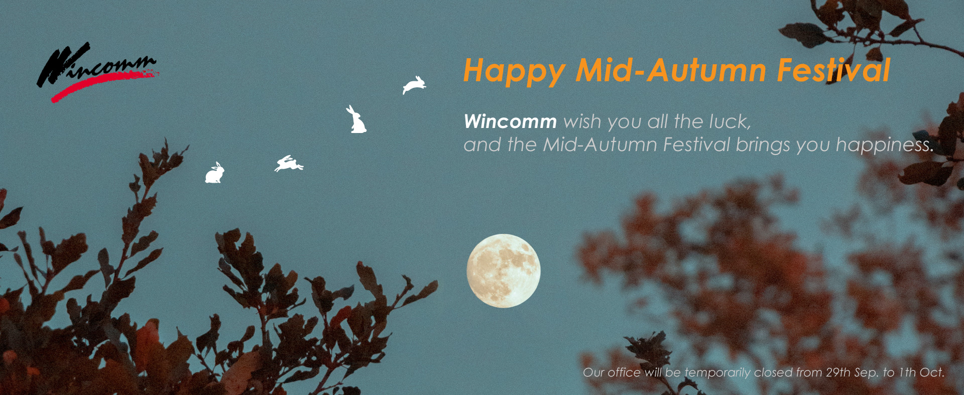 If you need any support or inquiry during this period, please mail to sales_support@wincomm.com.tw Wish you all the luck, and may the Mid-Autumn Festival brings you happiness.