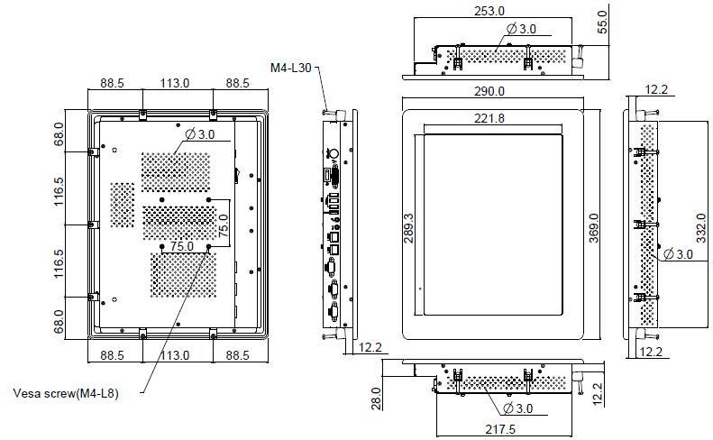 Dimensions (Net) 369 mm (H) x 290 mm (V) x 55 mm (T)