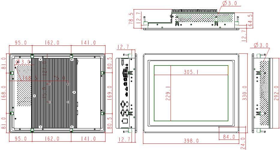 • Panel Mount w/Full Flat Res. or P-Cap Touch