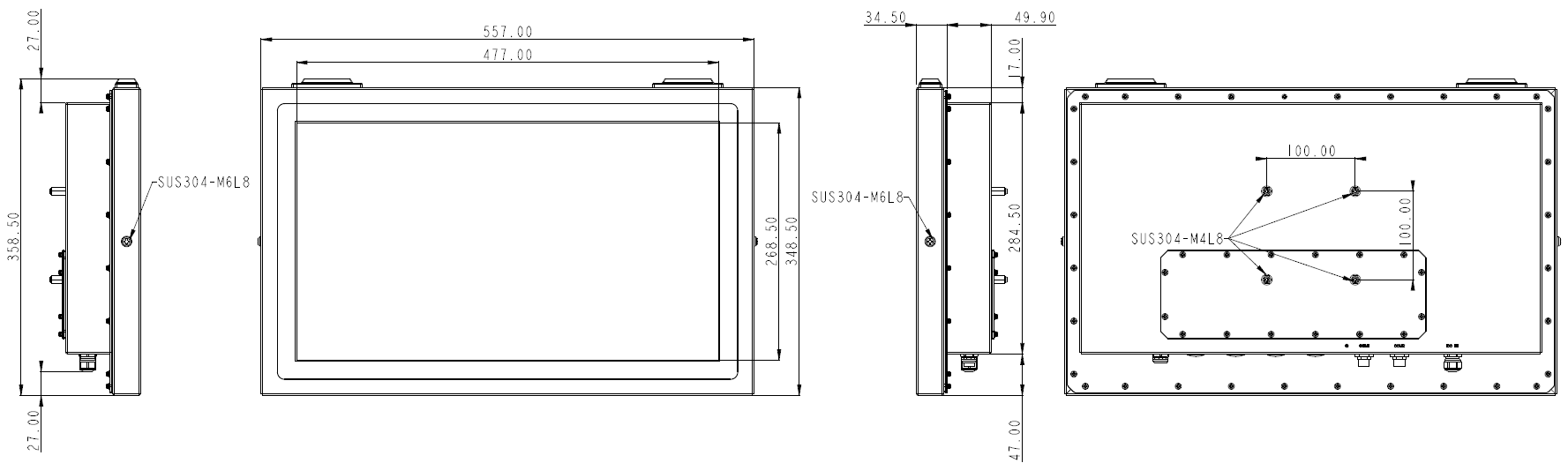 Mounting VESA 100, Side mount (M6*2)