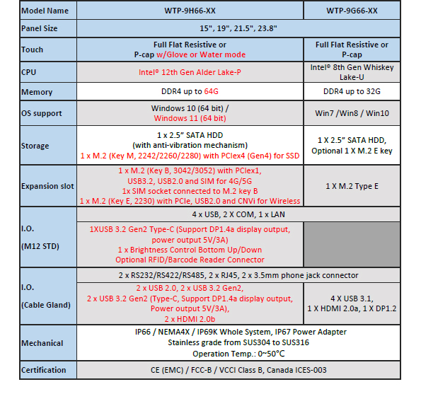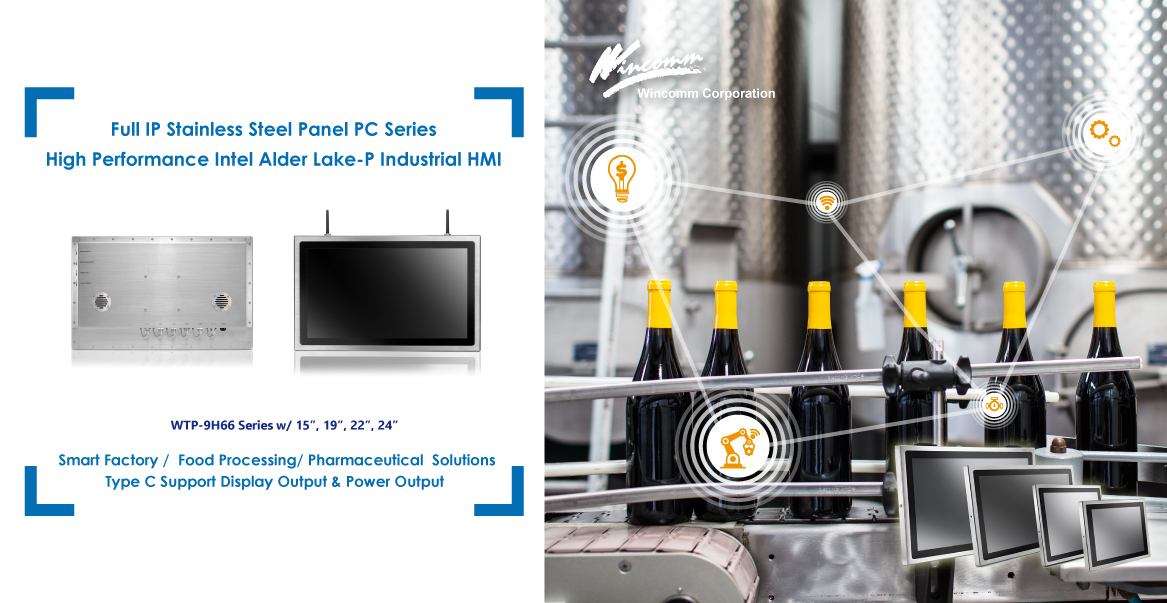 Wincomm 宣布最新的 Intel® 第 12 代 Alder Lake IP66/67/69K 不鏽鋼觸控面板電腦 WTP-9H66 series ,尺寸從 15 吋、19 吋、22 吋到 24 吋不等,適用於 食品加工 和 製藥應用。升級的 I.O. 配置具有 M12 向下連接器和可選的電纜螺紋 SKU,WTP-9H66 系列提供整個系統的默認 IP69K,第二個 HDD 用於數據備份,並且 USB3.2 和 Type C 可直接支援新應用程式。此外,可選的 RFID 或條碼閱讀器連接器,以及防水揚聲器,可支援工廠自動化的靈活數字轉型,尤其是在食品加工、製藥或生物技術應用中。