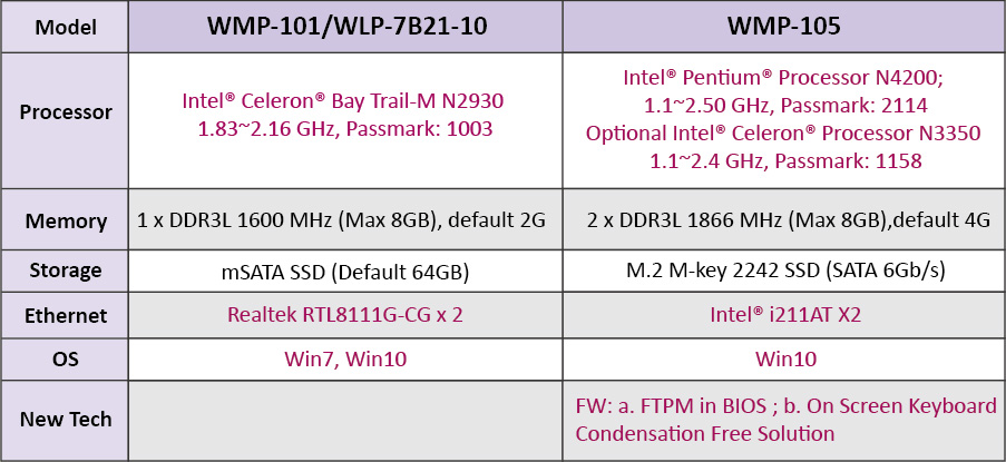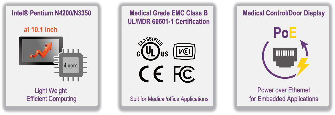 醫療級及工業級電腦領域的領導供應者,Wincomm 推出 10.1 吋的 WMP-105 醫療級 HMI 觸控系列,配有精製無邊框外觀設計,P-cap 多點觸控面板和 Intel® Pentium® Processor N4200 及選配 Celeron® N3350 處理器。針對遠距醫療、智能醫療資訊床邊系統及 POC 多媒體門禁系統應用,WMP-105 提供了輕薄、美觀的外型和高運算效能設計及醫療級安規認證(CE-EMC IEC 60601-1-2),提供高操作效能、省空間及高安全規範的絕佳智慧醫療級及智慧辦公環境解決方案。