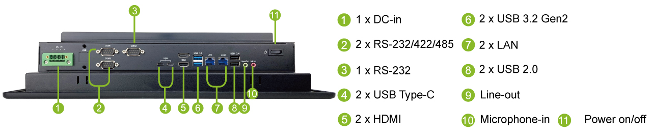圖1. 延續WLP系列的機構設計,WLP-7G20系列配有HDMI, 4 x USB3.2(2 X Type C)以及USB2.0以及其他IO選項,使應用上更加靈活彈性。
