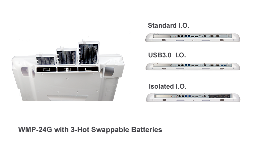 圖3 WMP-22G/24G 搭載三顆熱插拔電池支援24/7的行動巡房需求,彈性 I.O.介面設計,如可擴充側邊新增USB 3.0設計或可絕緣 4KV I.O.設計有效保護擴充醫療器材應用等設計,人性化滿足各種醫療專業工作需求。