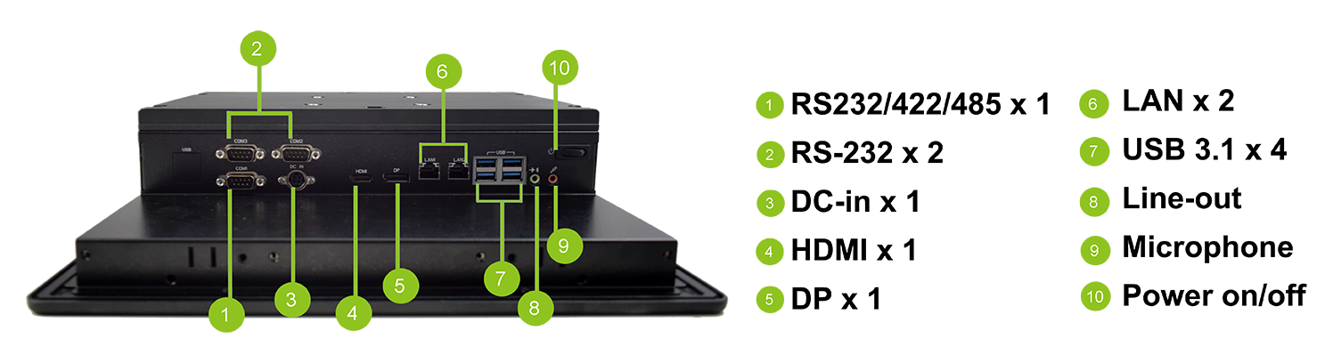 WLP-7G20系列具備多樣 I.O. 插槽: 最大到4個USB3.1 (可選配USB 2.0), COM x 3, LAN x 2, HDMI x 1, DP x 1, 以及M.2 wireless card, M.2 for USB2.0 或 SIM for 4G的延伸插槽。針對IIoT的趨勢下,中美萬泰提供多樣選配的I.O.來搭配不同環境的應用,例如:M.2 NVMe SSD, TPM2.0的選配,多樣的客製服務以滿足用戶的需求。