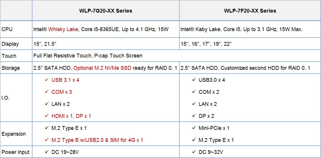 【2020/05/18新竹】 醫療級及工業級電腦領域的領導供應者,中美萬泰推出無風扇工業級觸控電腦最新Intel 第八代Whisky Lake CPU 平台WLP-7G20系列。 全平面觸控的WLP-7G20共有兩種尺寸, 15”以及21.5’’。相較於上一代的WLP-7F20系列,最大的優勢在CPU運算效能提升。CPU效能表現依不同應用而有所差異,但整體的效能表現仍顯著提升。