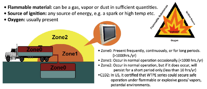 通常當環境存在三個元素時可能發生爆炸:一種是可燃材料,其可以是足夠量的氣體,蒸汽或粉塵;其次是點火源,也就是任何能量來源,例如火花或高溫等;第三個是存在於任何地方的氧氣。 防爆保護的基本原則是消除爆炸三元素的一個或多個。而中美萬泰WTPE系列經過C1D2/ATEx Zone II/IECEx認證,能確保在易燃或易爆氣體、蒸汽等潛在環境下安全操作。