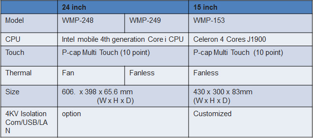 Everything, from the motherboard, BIOS, driver to the mechanical design was designed by Wincomm, so special customer requirements can be created to and a steady supply provided over the long-term. The WMP-24’’ series and WMP-15’’ series are now available for sale. If you have any product or customization requirements, please contact Wincomm sales (mail: sales_support@wincomm.com.tw). For more product information, please visit the Wincomm website at https://www.wincommusa.com/