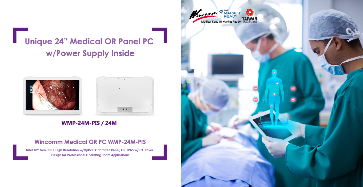 中美萬泰發布全新手術室專用醫療級觸控電腦 WMP-24M(-PIS)系列 –卓越領先同業於醫院手術診療間的設計,贏得2022年度台灣精品獎搭載 英特爾第十代Comet Lake系列Core™ i7i5/i3/Celeron行動高效運算處理器35W,此系列達無風扇,搭載獨特I.O.外蓋設計達六面IP65防水防塵,創新影像輸入與輸入同步支援設計,同時預留PCIex16擴充介面,以高瓦特數250W醫療級電源轉換器完美支援各種手術室影像即時傳輸需求,並已通過最新醫療級安全認證,可在醫院手術室安心使用。尤有甚者,圖1. 中美萬泰推出全新搭載英特爾第十代處理器24吋醫療級觸控電腦,針對醫院內手術室各式應用的獨創式設計搭配獨特的電源轉換器內裝設計,減輕手術懸臂或安裝時的線路安裝難度,有效提升手術操作安全性及易清潔性,通過多項獨特性針對手術應用需求的設計,終於贏得今年台灣精品於醫療器材類產品肯定。