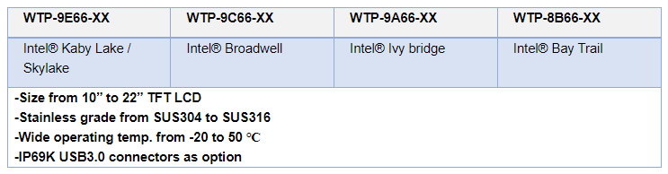 為第七代Kaby Lake CPU提供客戶絕佳運算效能的整體解決方案,同時維持IP66/69K整機設計,中美萬泰成功與應用方案解決夥伴推出高度整合Full IP不銹鋼觸控電腦WTP產品系列,協助推進智慧工廠不同應用整合。