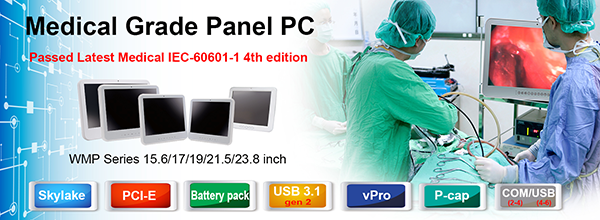 Wincomm announces that the WMP series 24” medical grade touch panel PC WMP-24C was used in a Euro hospital operating room’s endoscopic system . The WMP-24C meets the embedded endoscopic system specifications with its high performance CPU, graphics capabilities, PCI-E[x16] expansion function and image capture card. In addition, it has USB3.1 gen 2 slots (with transfer speeds of up to 10Gbps) to conveniently connect other medical devices. The P-cap touch design allows users to easily operate the unit. The 24 inch WMP-24C with Intel Skylake i5-6500TE, passmark: 7421 has the highest performance for its panel size in the medical grade panel PC industry. (Wincomm actual test results; versus industry passmark average of 6443).