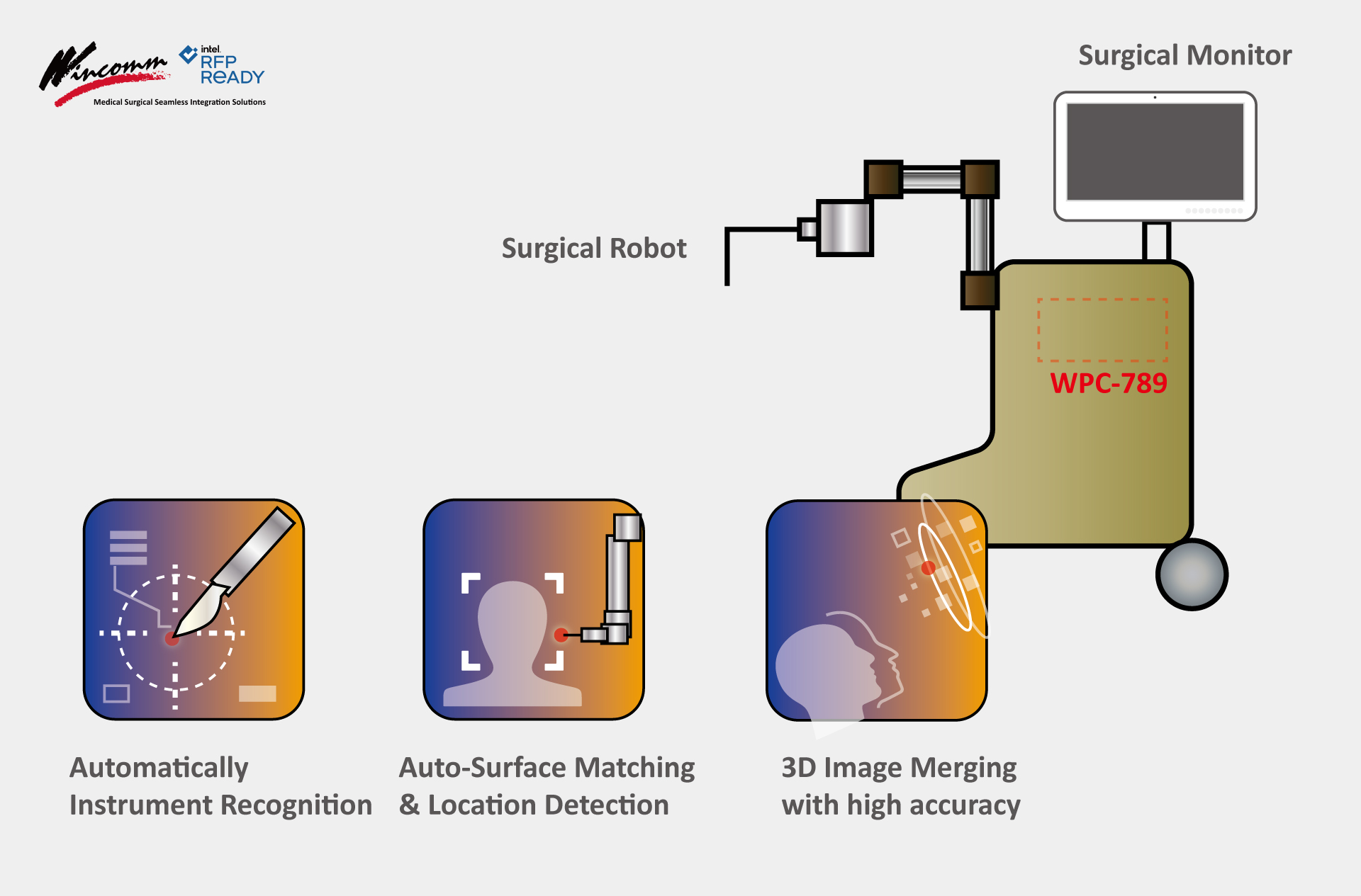 Wincomm provided the medical grade box pc WPC-789 series, equipped with Intel 12th Gen. Core i9/i7/i5 processors with high power graphic card, and GPI function to enable the autonomous brain surgery navigating robot solutions. In this case, it is required to integrate more than 10 sensors to build 3D brain model real time and navigate the detector inserted to the patients in this surgery flow. Furthermore, it would link to the captured image flow to smoothly integrate into the overall surgery, so this programming API is a tool kits with the capture card that provided the completed solution for developer. Finally, Wincomm worked with our partners to co-develop this medical pc with rich I.O. and high power output support to enable this solution.