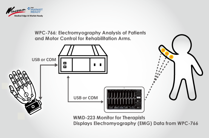 The integration of a medical box PC, WPC series and medical monitor , WMD series , enables this innovative rehabilitation device to address the above challenges effectively: