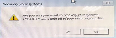 - 畫面會顯示一則 警告訊息,提醒使用者執行還原將會有 資料遺失風險。請先確保資料已完成備份,然後點選 「Yes」 繼續。