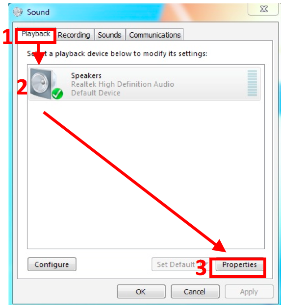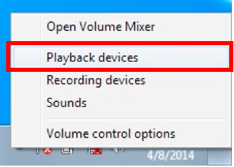 在工作列上點選聲音圖示並選擇「播放裝置」。
