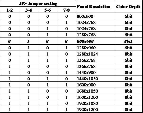 | Intel VGA setting | WMP-226 Panel | WMP-226-DVI output | Support or not |