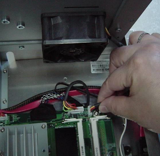 5. 打開後蓋並從接頭上拔除風扇。