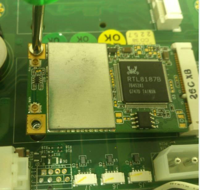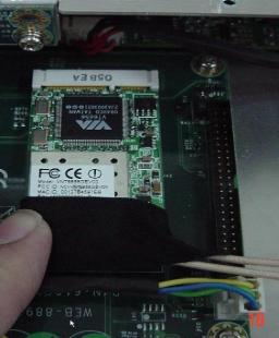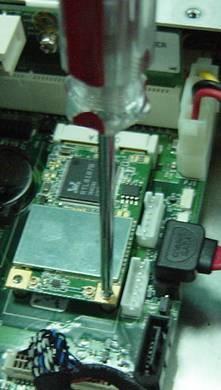 5. 以兩顆螺絲安裝 Mini PCIe 無線網卡。