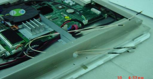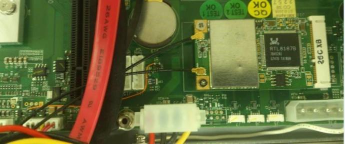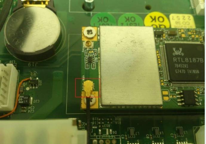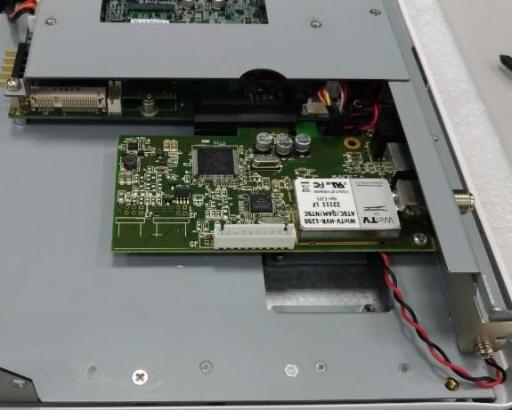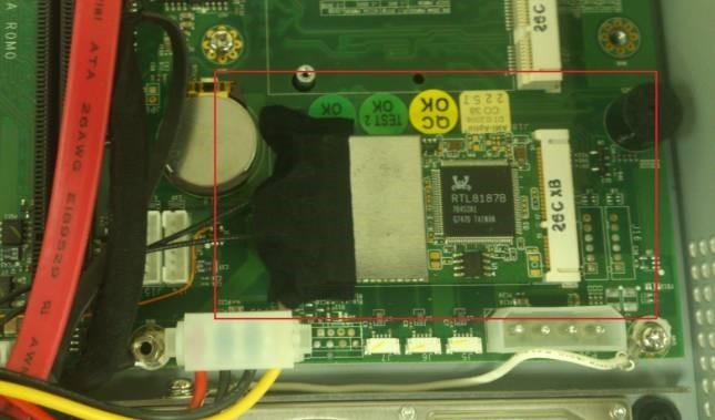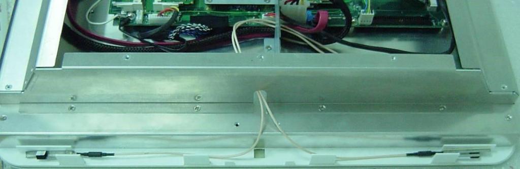 - 依下圖將 Mini-PCIe LAN card antenna 固定。