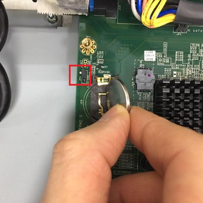 5.Set the JP5 to 1-2, and install the coin battery, bracket, the rear housing, and the HDD cover.