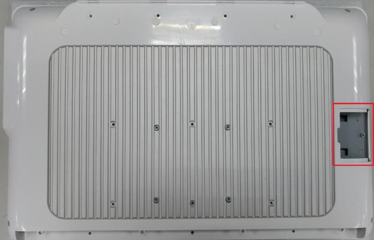 4. 拆下後殼上的防塵蓋,然後安裝 天線 / 墊圈 / 螺帽 至後殼。