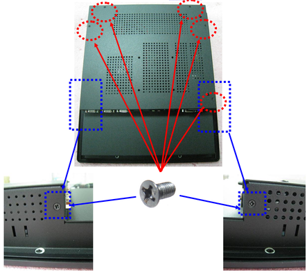 1. Release screws on rear cover as below: