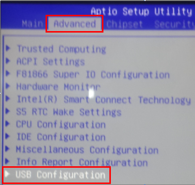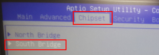 4. Select Chipset > South Bridge > USB Configuration