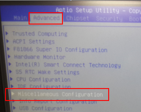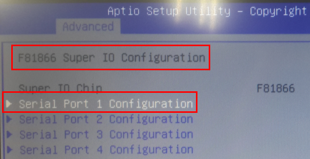 Select Advanced > F81866 super IO configuration
