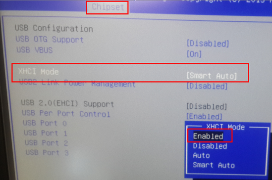 5. Change XHCI Mode from Smart Auto to Enabled.