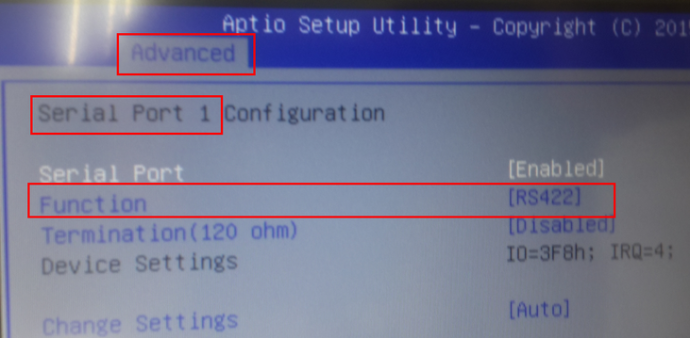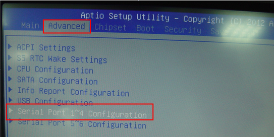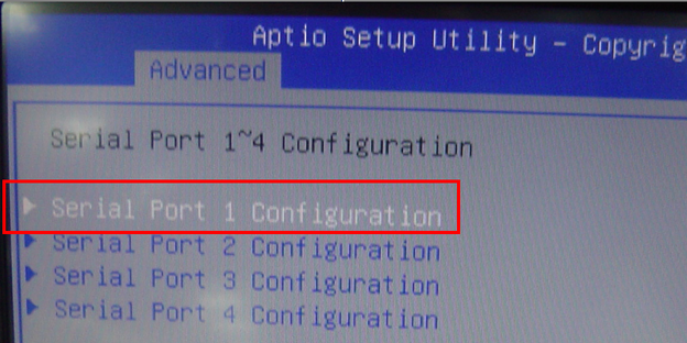 1. 進入 Advanced > Serial Port 1~4 Configuration。