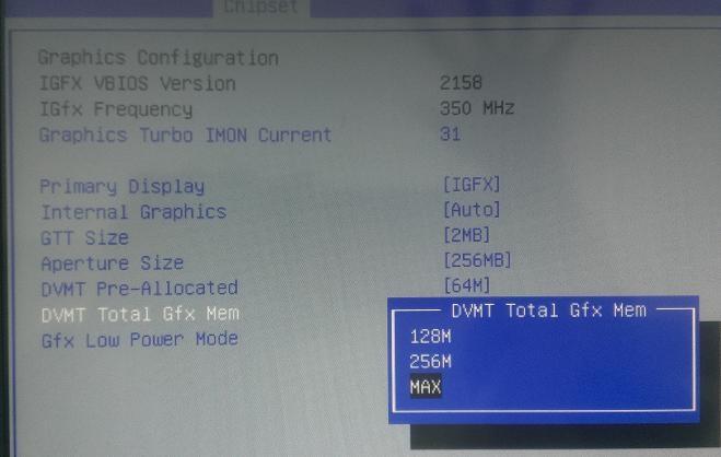 找到 DVMT Total Gfx Mem 項目。(預設值為 256MB)