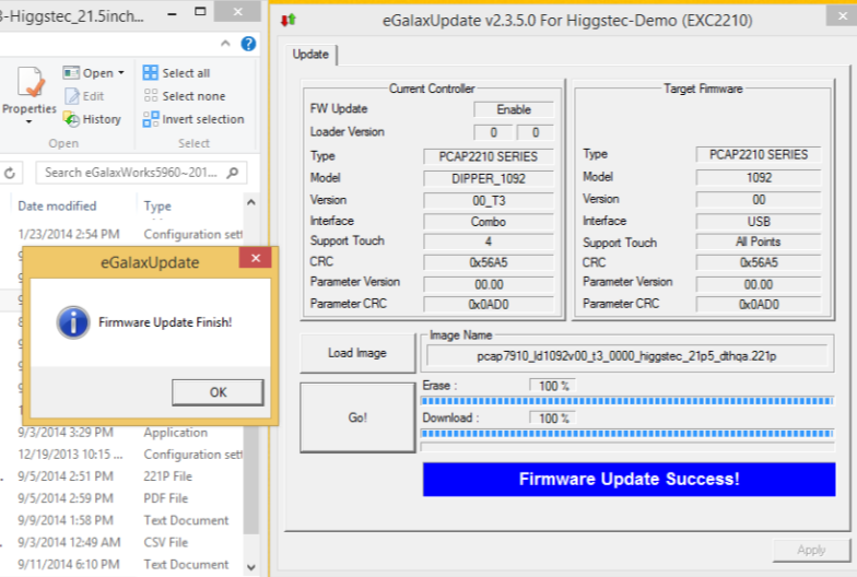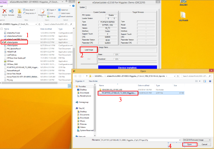 1. 執行 eGalaxUpdate.exe → 選擇 Load image → 選擇韌體檔 → Open。