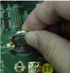 4. 移除 鈕扣電池 (Coin Battery),並依下圖所示短接電池。