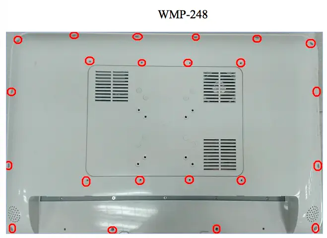 2. 請卸下下圖所示位置的所有螺絲。